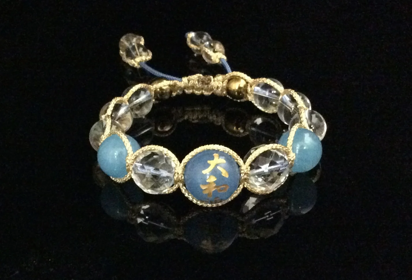 The middle stone is Yamatodamashii engraved on Smoky Quartz (frosted finish) that promotes grounding while neutralizing negative energy.