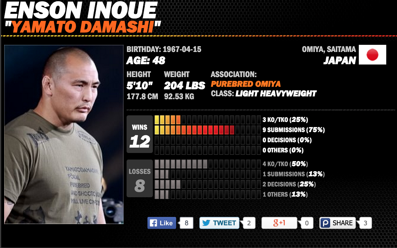 Enson then moved on to the UFC where he defeated Royce Alger and eventually moved over to Pride FC where he fought the best fighters in the world. His legacy of fighting with Yamatodamashii, or Samurai Spirit is something that made him a legend in Japan.
